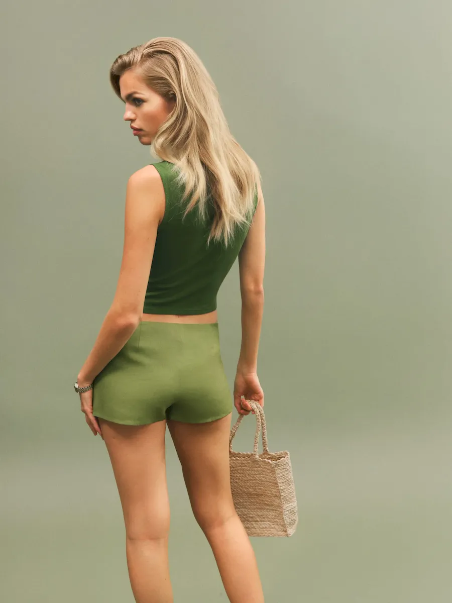 The model is wearing a size XS and is 5’10”, 24″ waist, 35″ hips, 31″ bust.