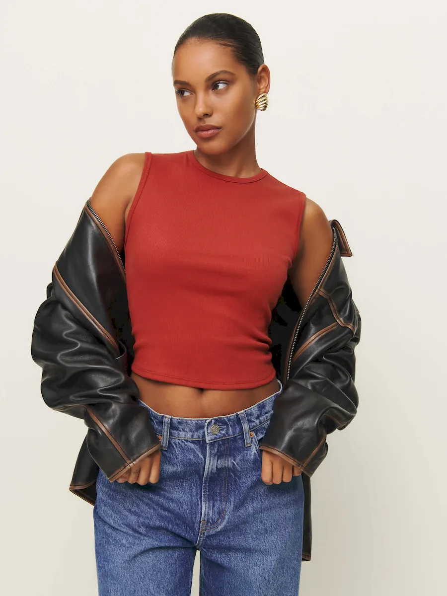 This is a 2×1 medium weight rib knit fabric with moderate stretch made from 97% Organically Grown Cotton and 3% Spandex. Hand wash + dry flat. More onfabric & care.