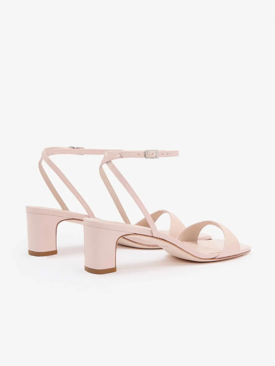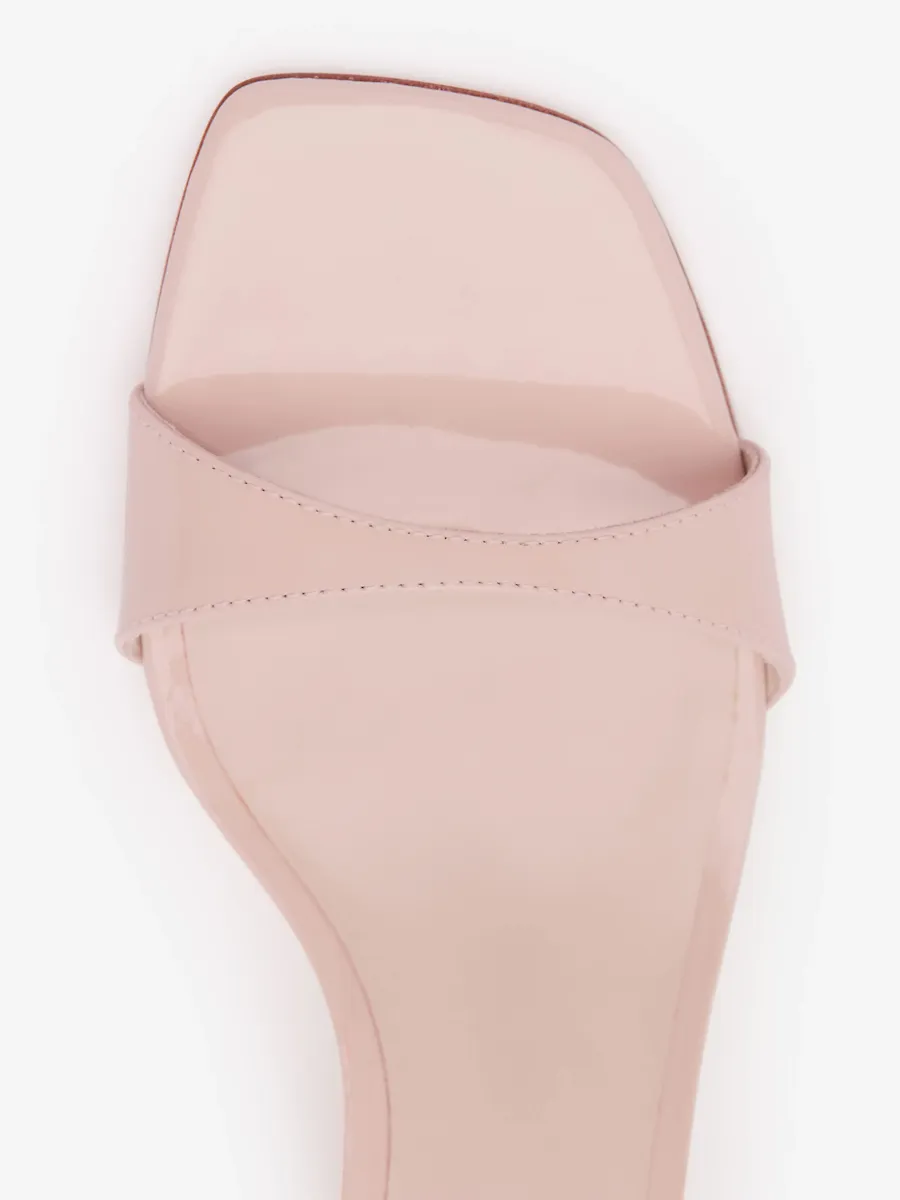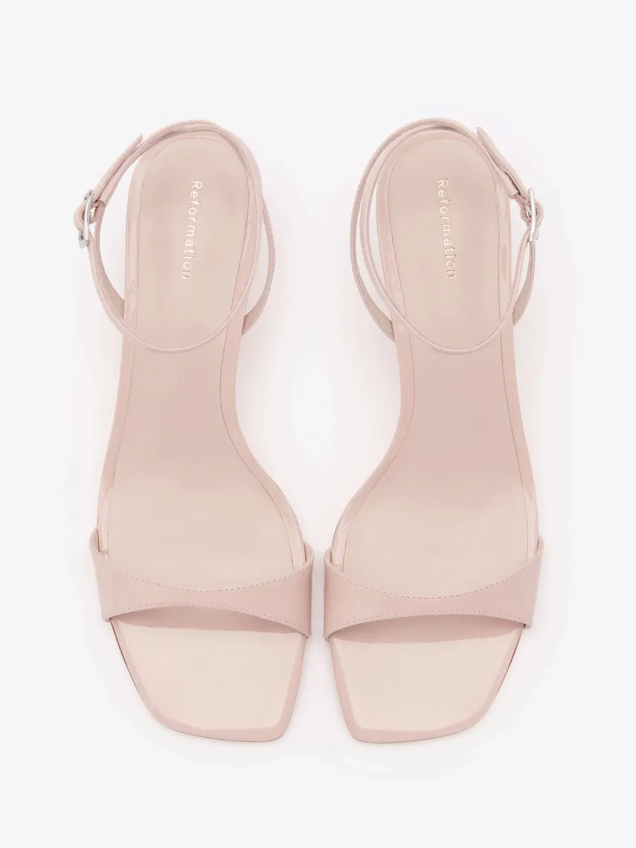 Bovine leather with lustrous patent finish.