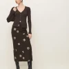 The model is wearing a size 0 and is 5’10”, 24″ waist, 35″ hips, 31″ bust.