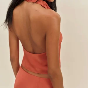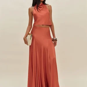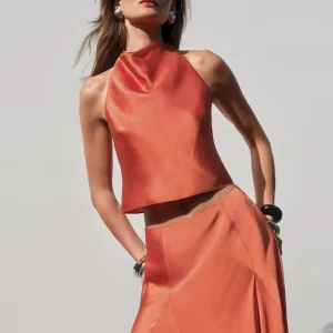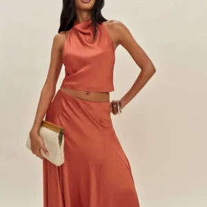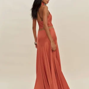 The model is wearing a size 0 and is 5’10”, 23″ waist, 34″ hips, 32″ bust.