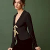 The model is wearing a size S and is 5’9″, 25″ waist, 36.5″ hips, 34″ bust.