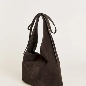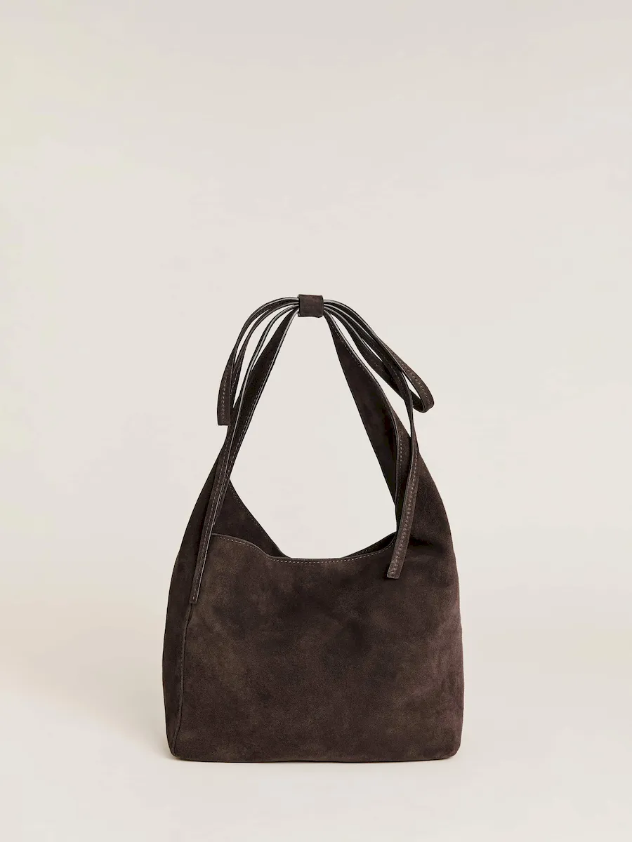 a slouchy tote with a magnetic closure,features a decorative tie detail,and inside zip pocket with a card holder.
