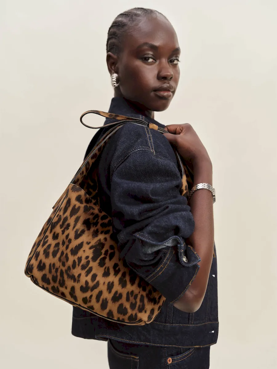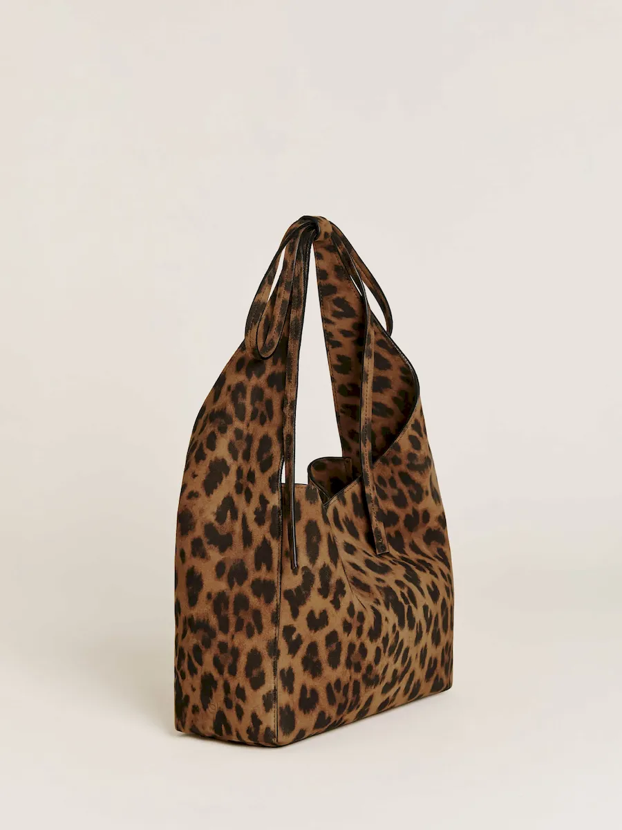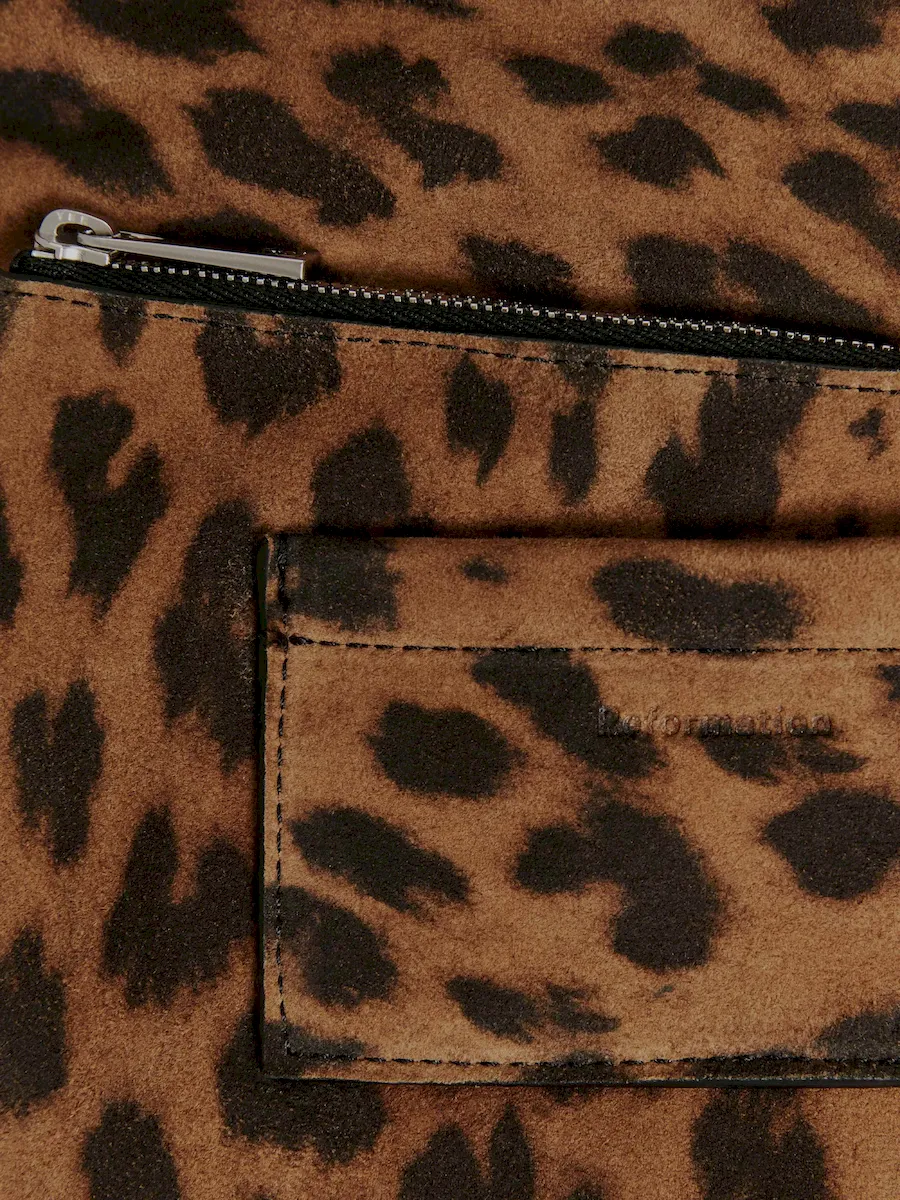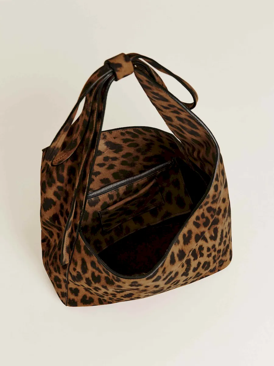 High-quality delicate nap, sheep suede with leopard print. Spot clean. More onfabric & care.