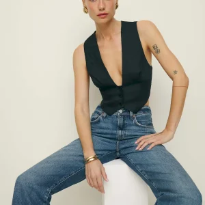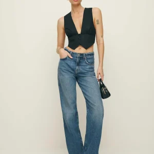 The model is wearing a size 0 and is 5’7″, 23″ waist, 34″ hips, 32″ bust.