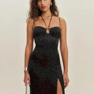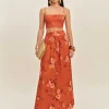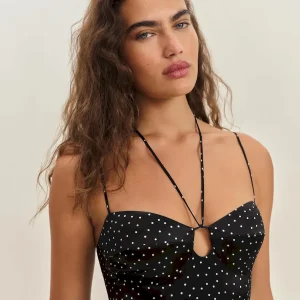The model is wearing a size 2 and is 5’9.5″, 25″ waist, 36″ hips, 34″ bust.