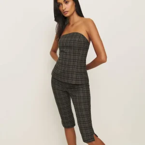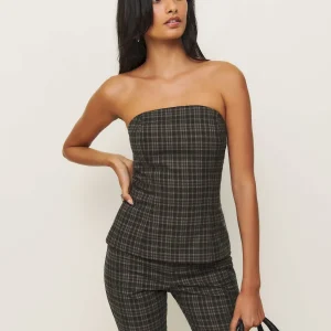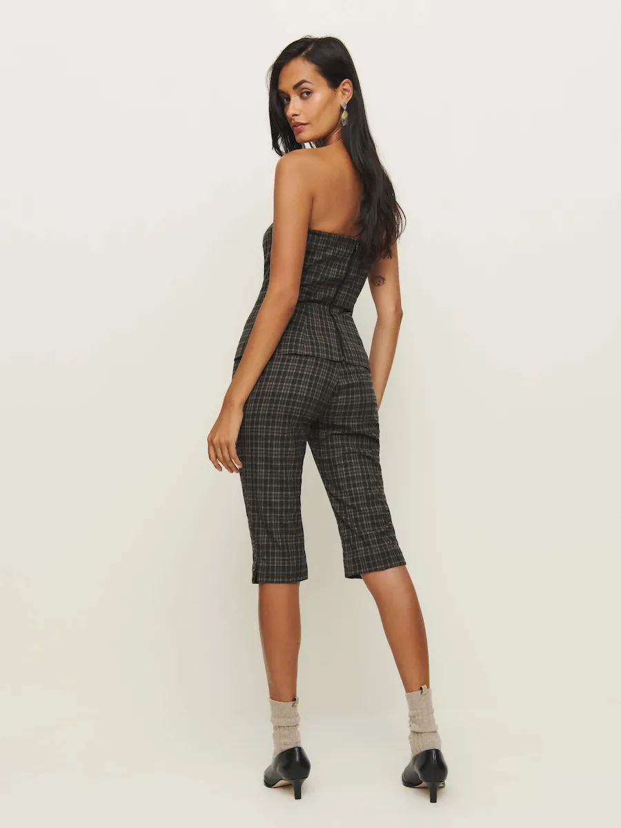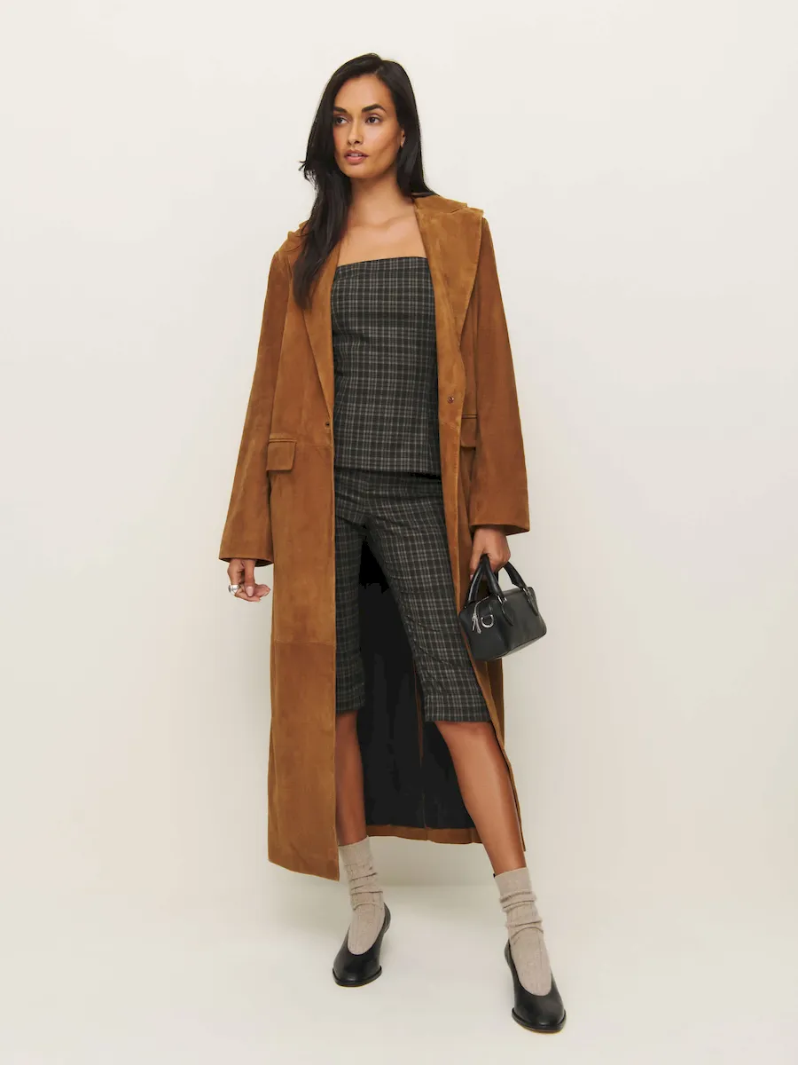 The model is wearing a size 0 and is 5’9″, 25″ waist, 35″ hips, 32″ bust.