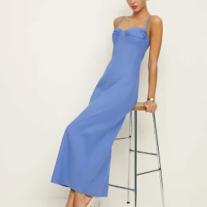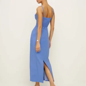 back smocking, adjustable straps, sweetheart neckline, side slit.