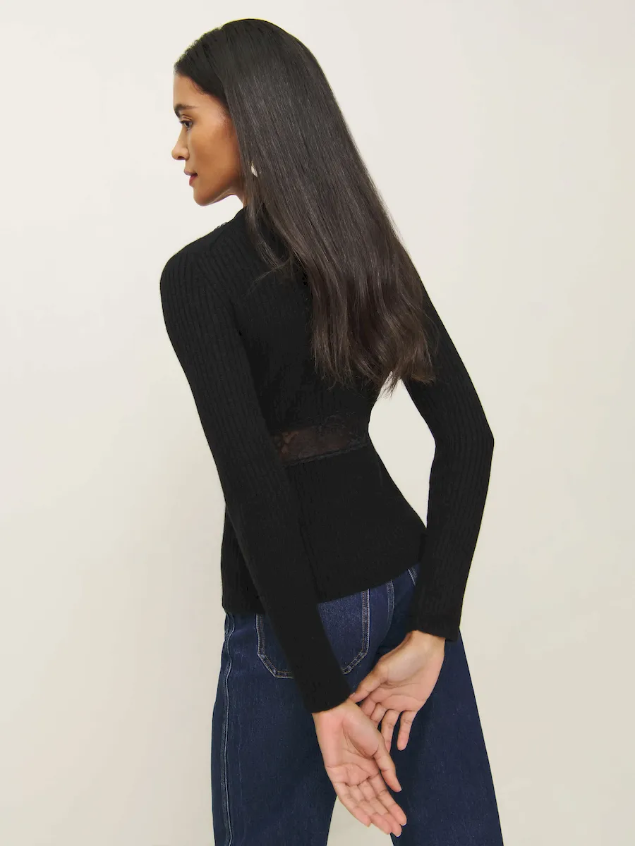 This is a fine-gauge recycled cashmere blend sweater knit – 95% Recycled Cashmere, 5% Cashmere. Hand wash + dry flat. More onfabric & care.