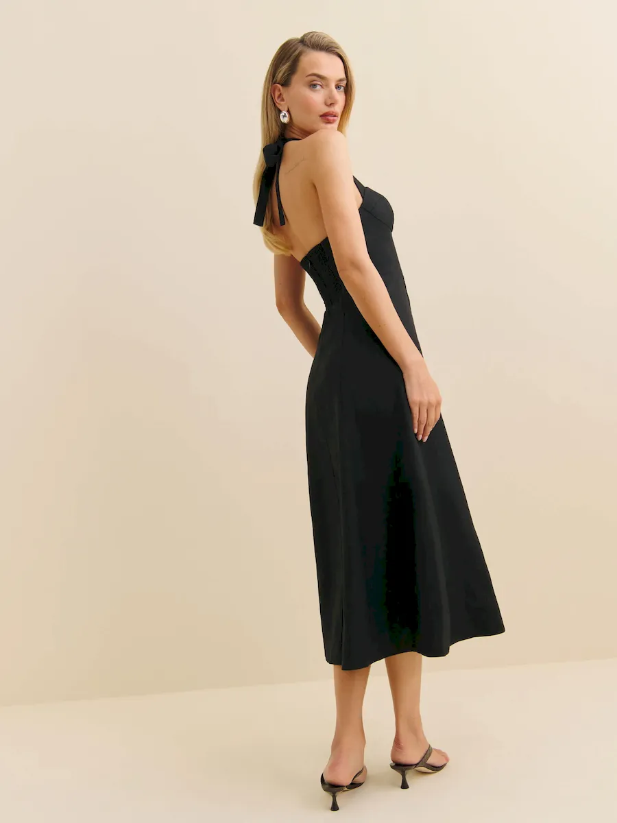 back smocking, halter neckline.