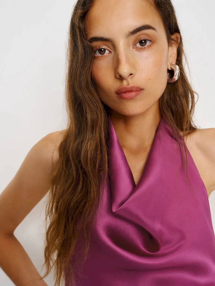This is a lightweight silk charmeuse fabric – 100% silk. Dry clean only. More onfabric & care.