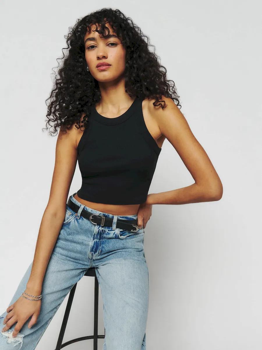 This is a 2×1 medium weight rib knit fabric with moderate stretch made from 97% Organically Grown Cotton and 3% Spandex. Hand wash + dry flat. More onfabric & care.