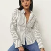 The model is wearing a size XS and is 5’9″, 23.5″ waist, 34″ hips, 34″ bust.
