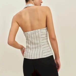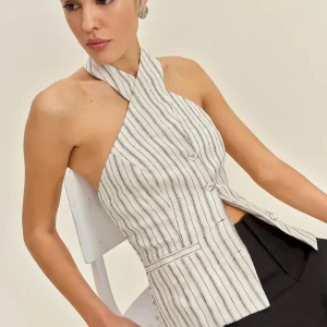The model is wearing a size 0 and is 5′ 9.5″, 24″ waist, 34.5″ hips, 34″ bust.