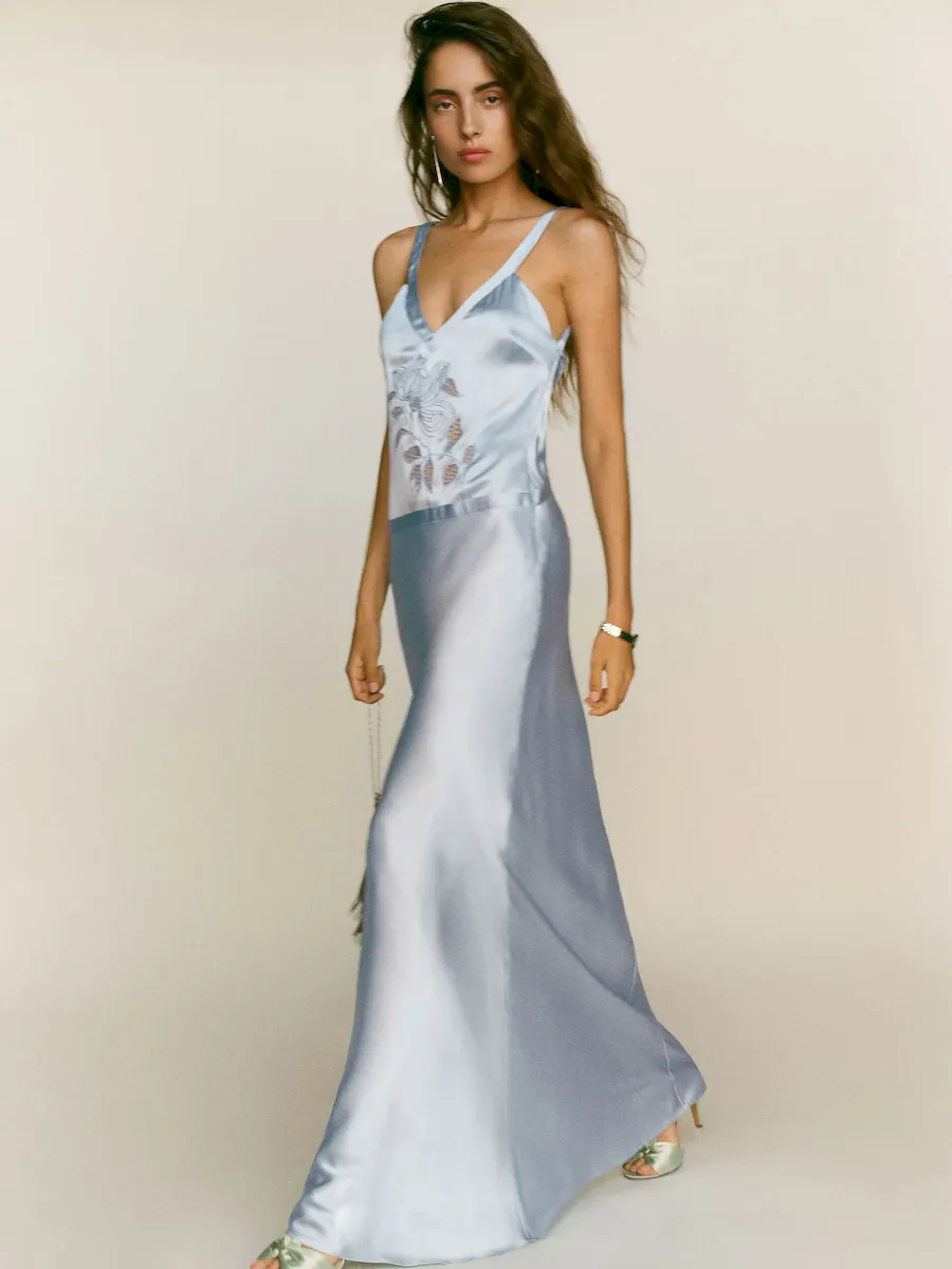 This is a lightweight silk charmeuse fabric made from 100% Silk. Dry clean only. More onfabric & care.