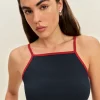 The model is wearing a size XS and is 5’7″, 23″ waist, 34″ hips, 32″ bust.