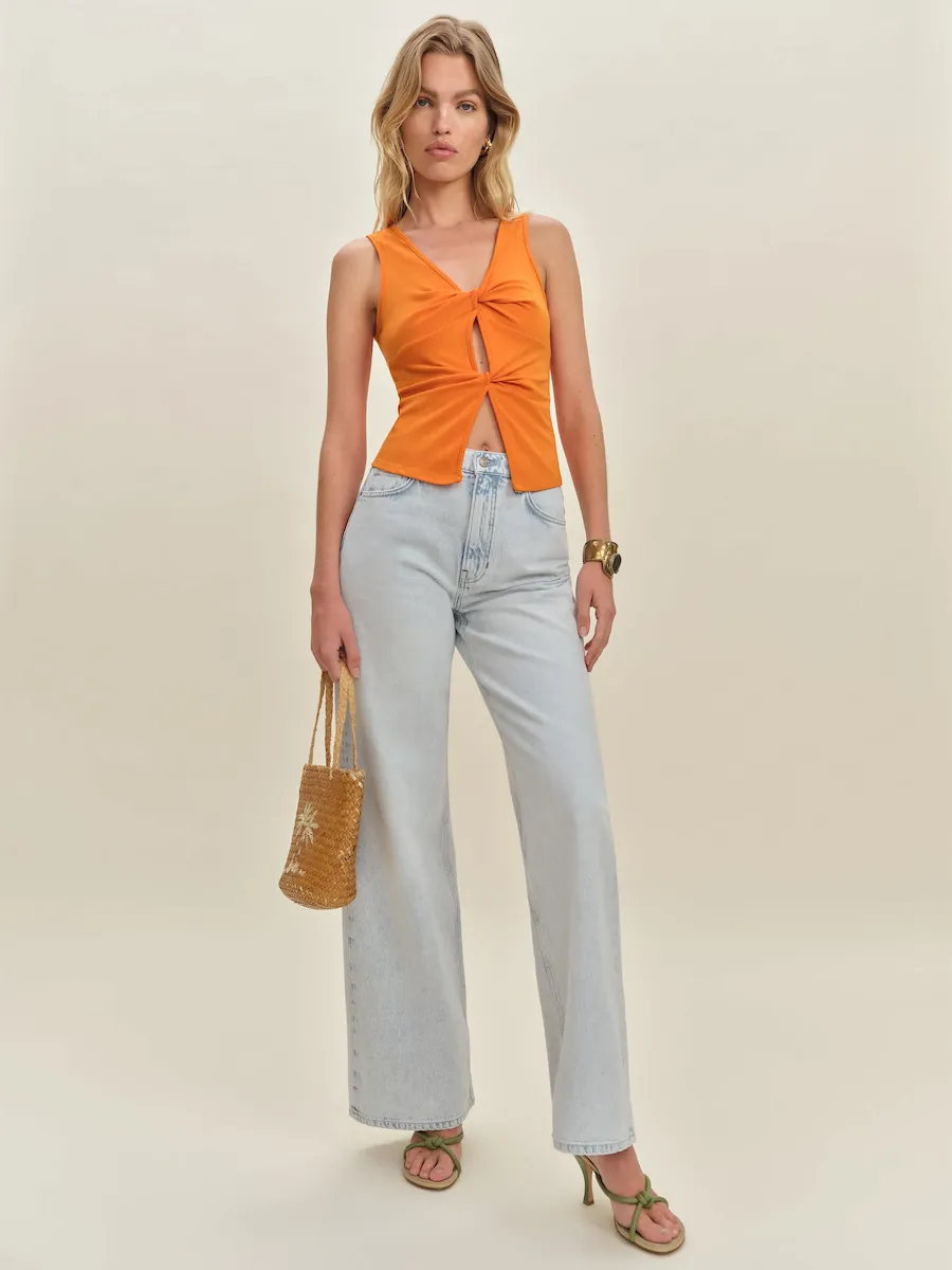 The model is wearing a size XS and is 5’10”, 24″ waist, 35″ hips, 31″ bust.