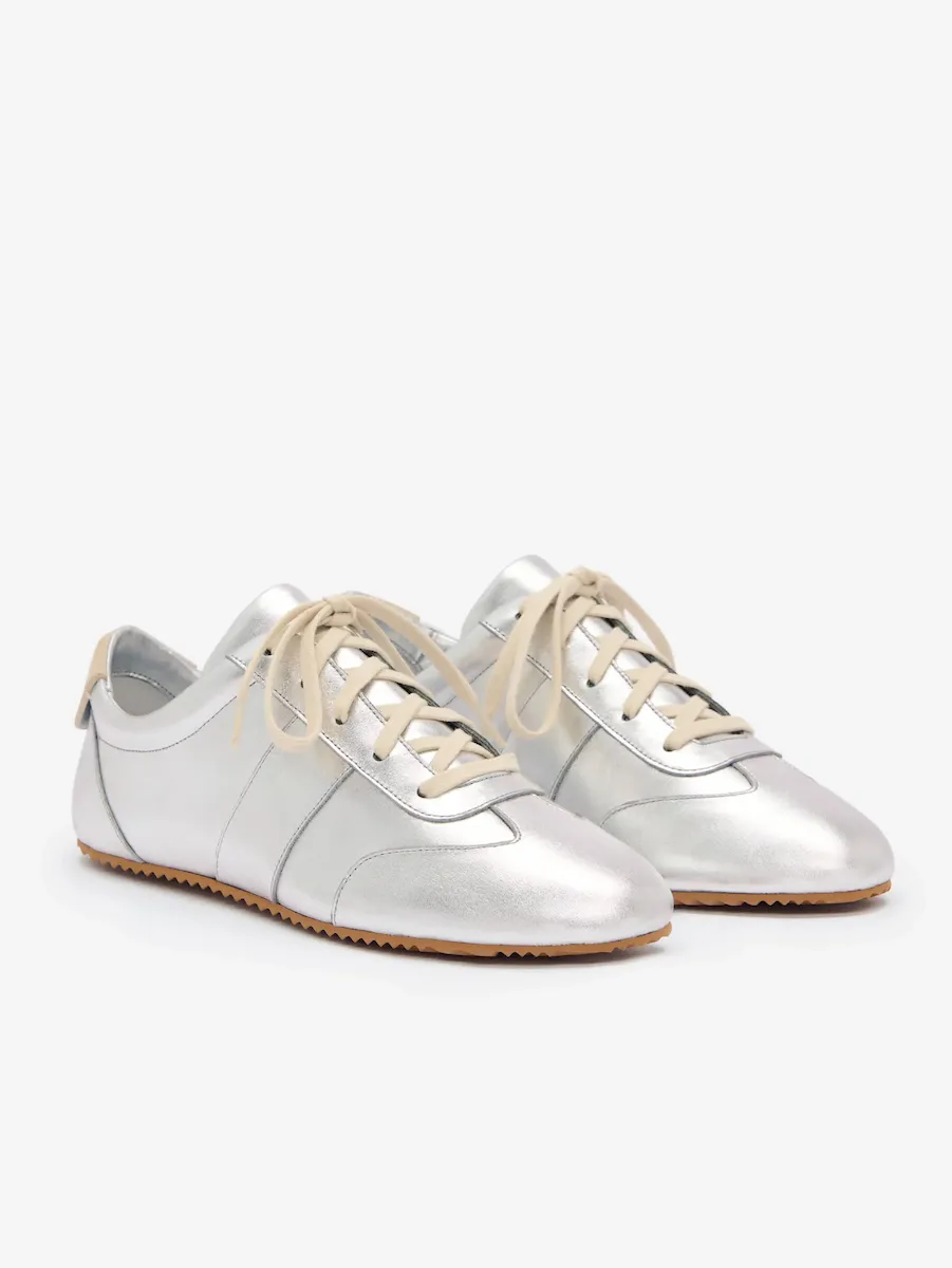 Upper is made from soft foil metallic leather with high shine and subtle surface texture.