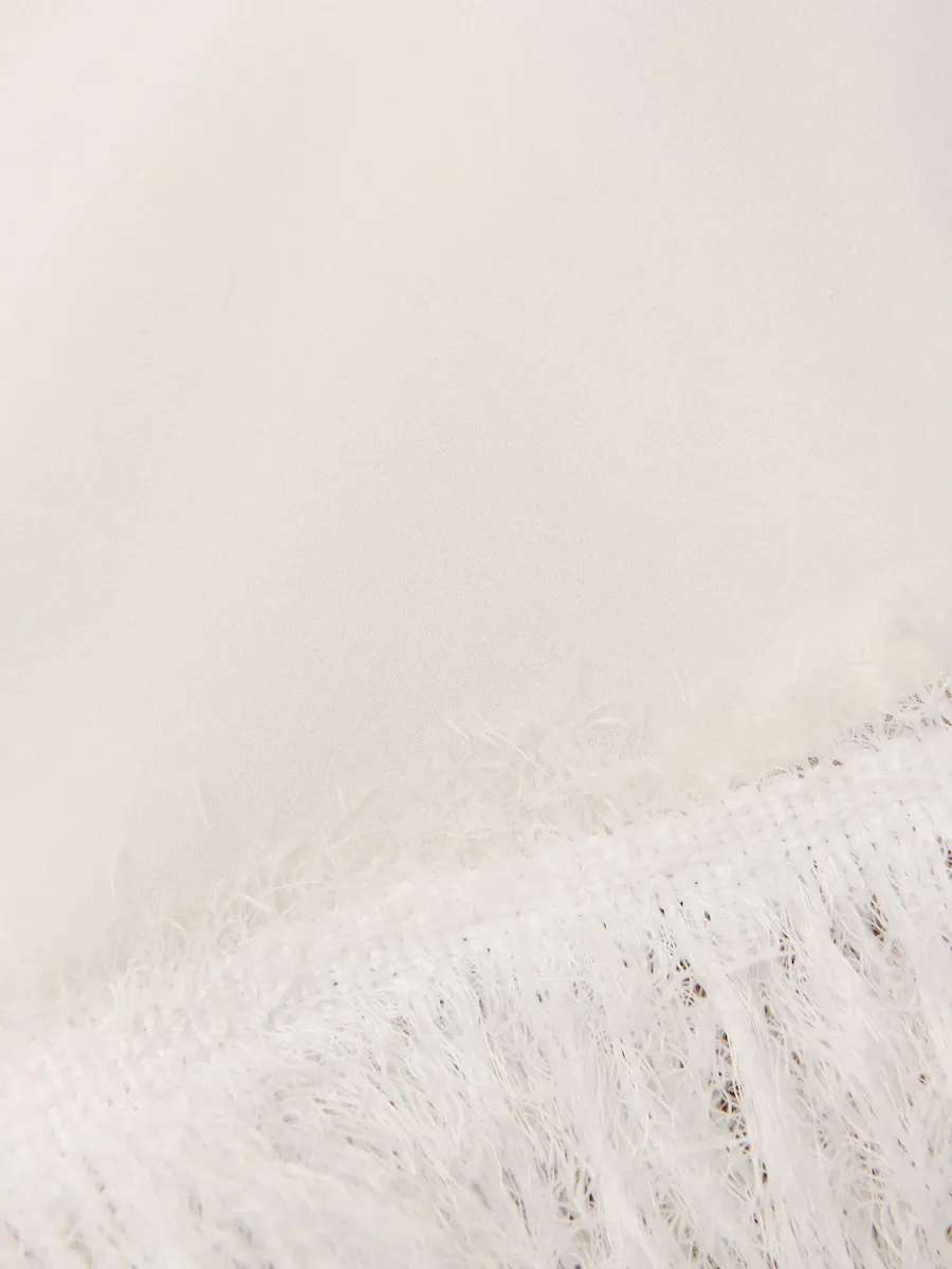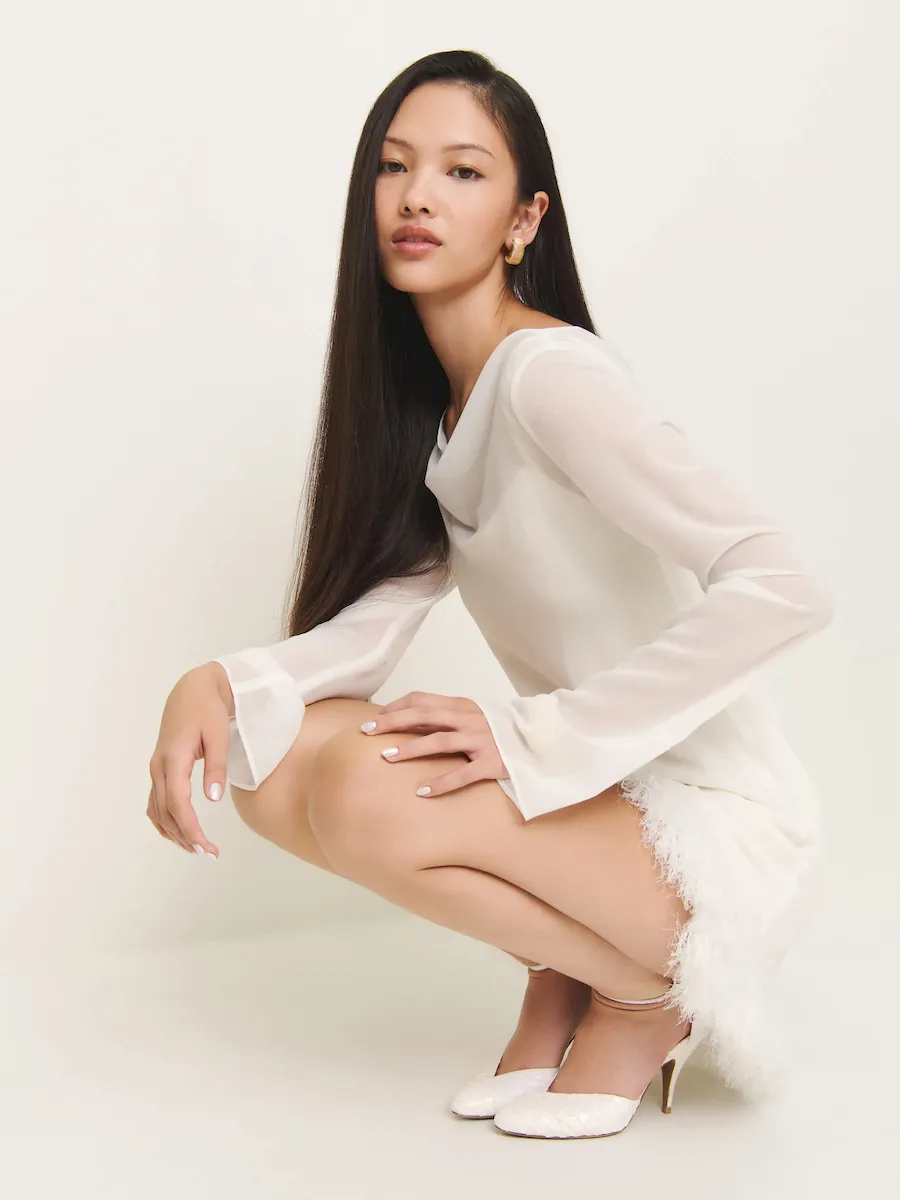 The model is wearing a size 0 and has a 23.5″ waist, 35″ hips, 31″ bust.