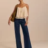 The model is wearing a size 0 and has a 24.5″ waist, 35″ hips.