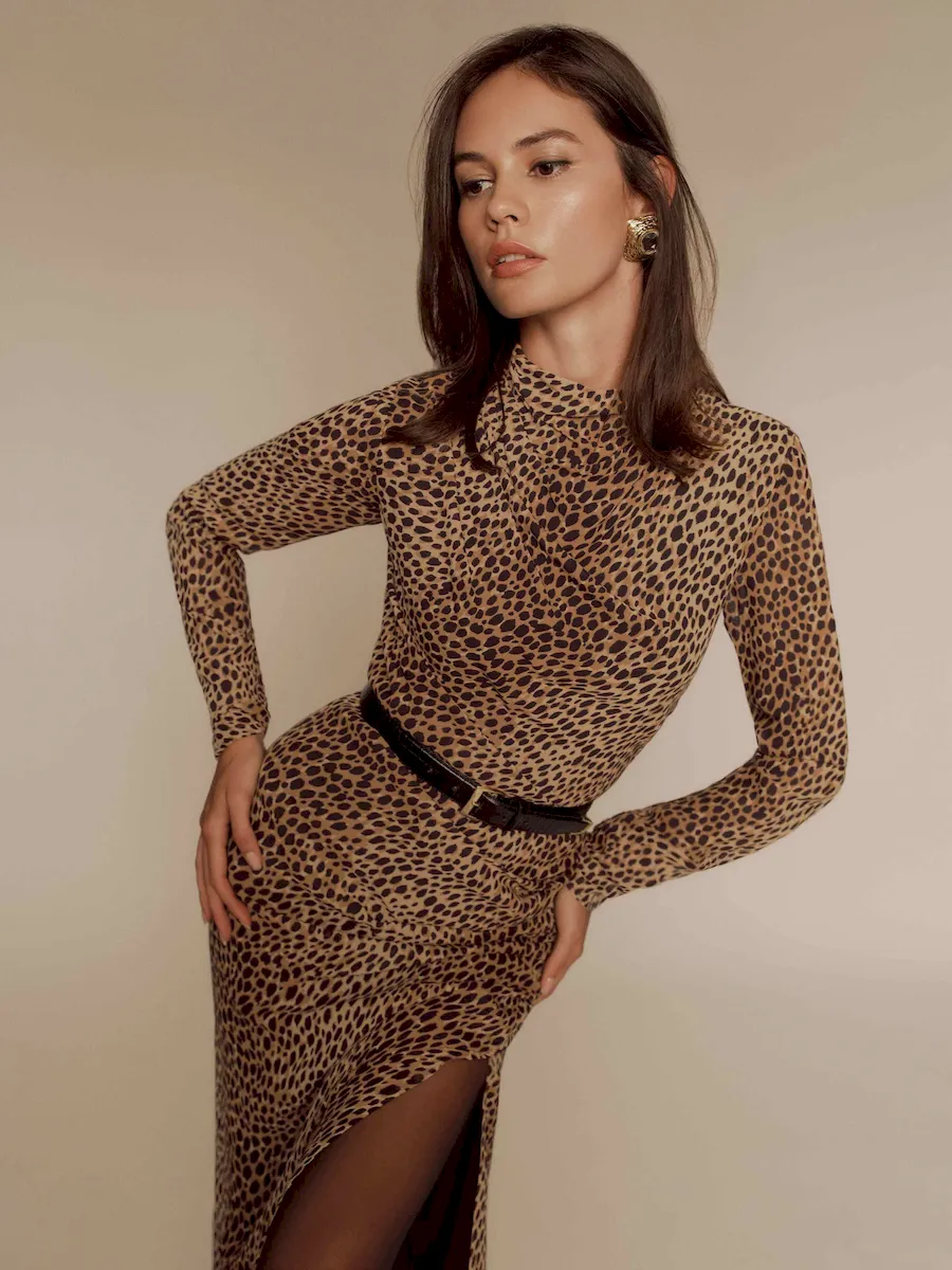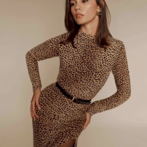 The model is wearing a size 0 and is 5’9″, 24″ waist, 34″ hips, 32″ bust.