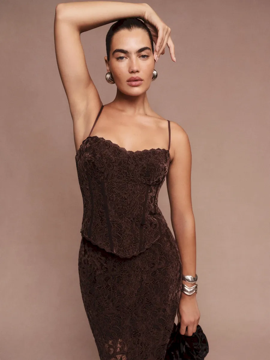 Designed to be fitted at bodice with a column skirt.See our size & fit guide.