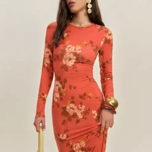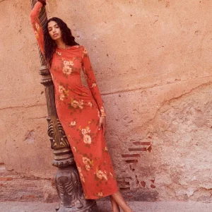 The model is wearing a size XS and is 5′ 9.5″, 24″ waist, 34.5″ hips, 34″ bust.
