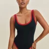 The model is wearing a size 0 and is 5’10”, 25″ waist, 34.5″ hips, 31″ bust.