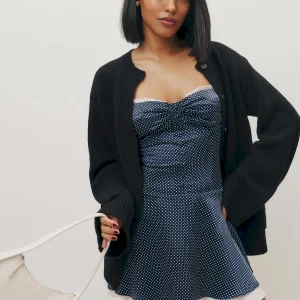 The model is wearing a size 0 and is 5’9″, 23.5″ waist, 34″ hips, 34″ bust.