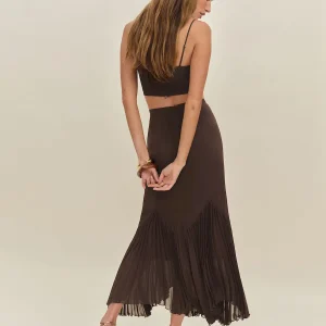 The model is wearing a size 0 and is 5’9″, 23″ waist, 34″ hips, 32″ bust.