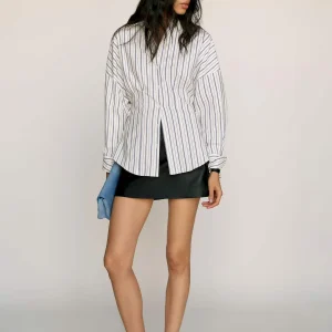 The model is wearing a size 0 and is 5’10”, 24.5″ waist, 34.5″ hips, 31″ bust.