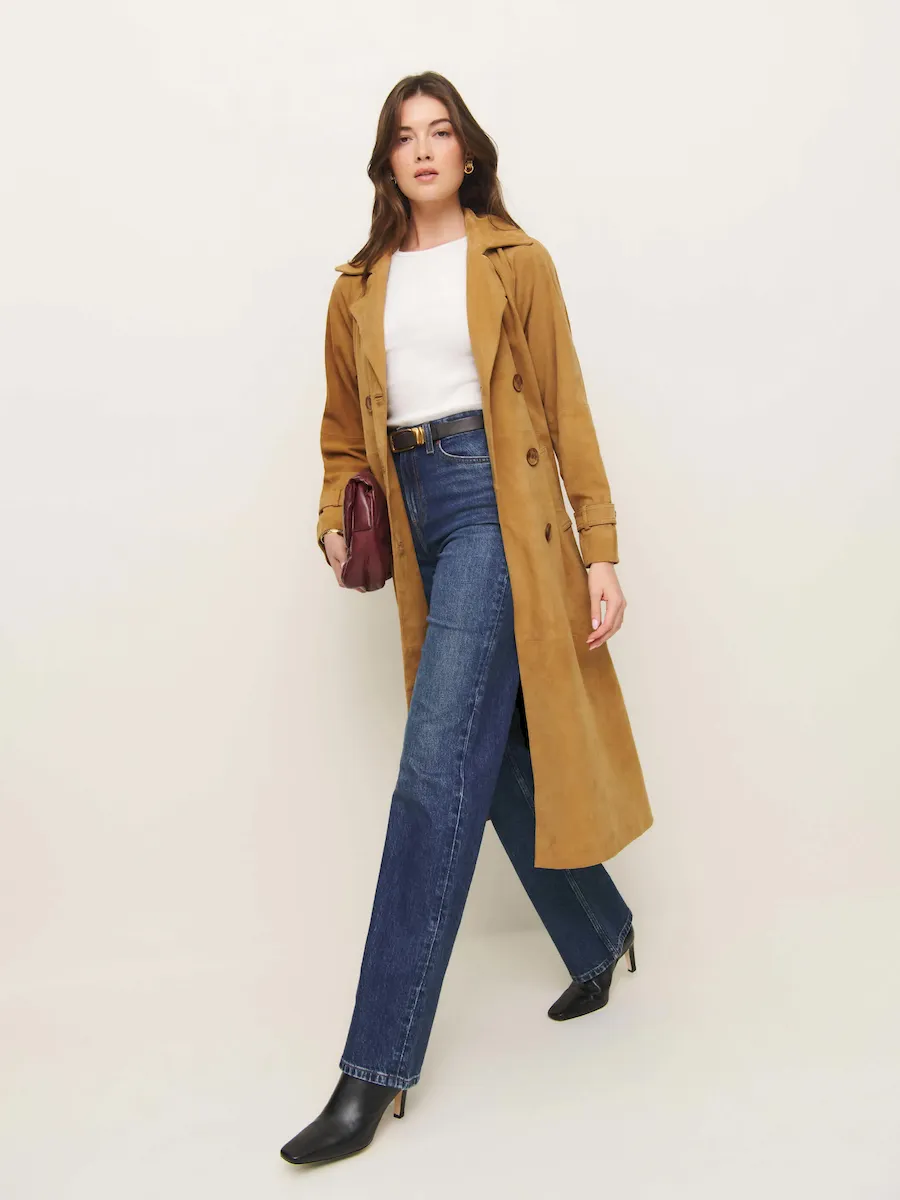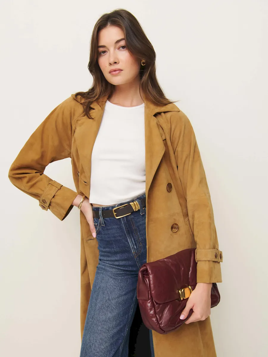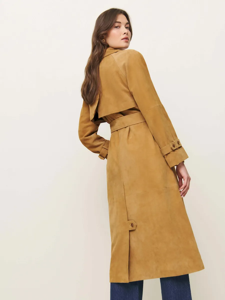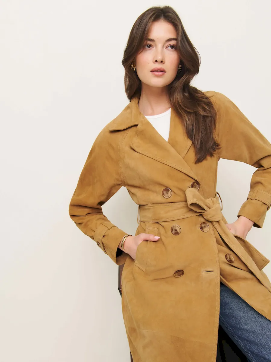Lightweight chrome free drapey soft lamb suede. Dry clean only. More onfabric & care.