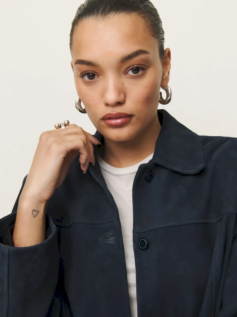 Lightweight and drapey soft suede. This a lamb suede sourced from a Leather Working Group Gold certified tannery. More onfabric & care.