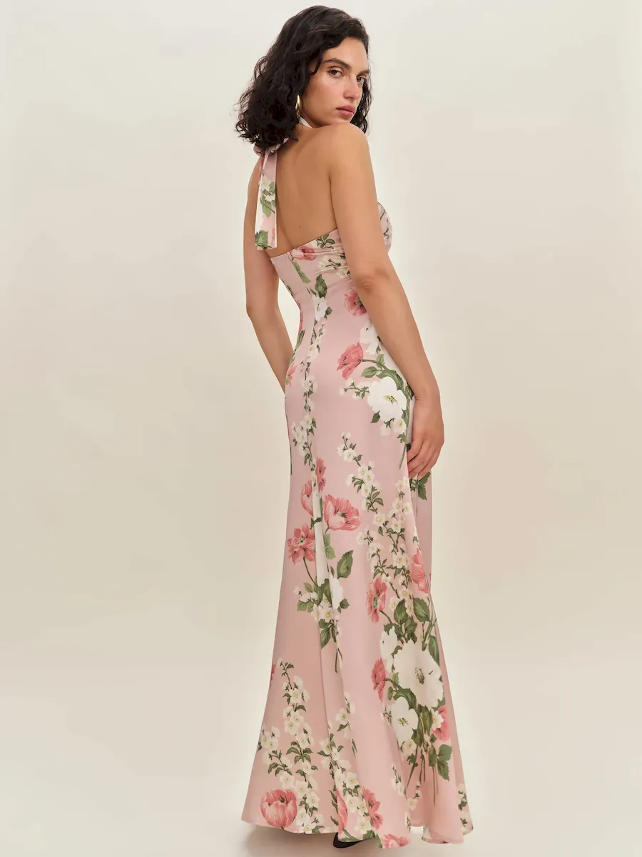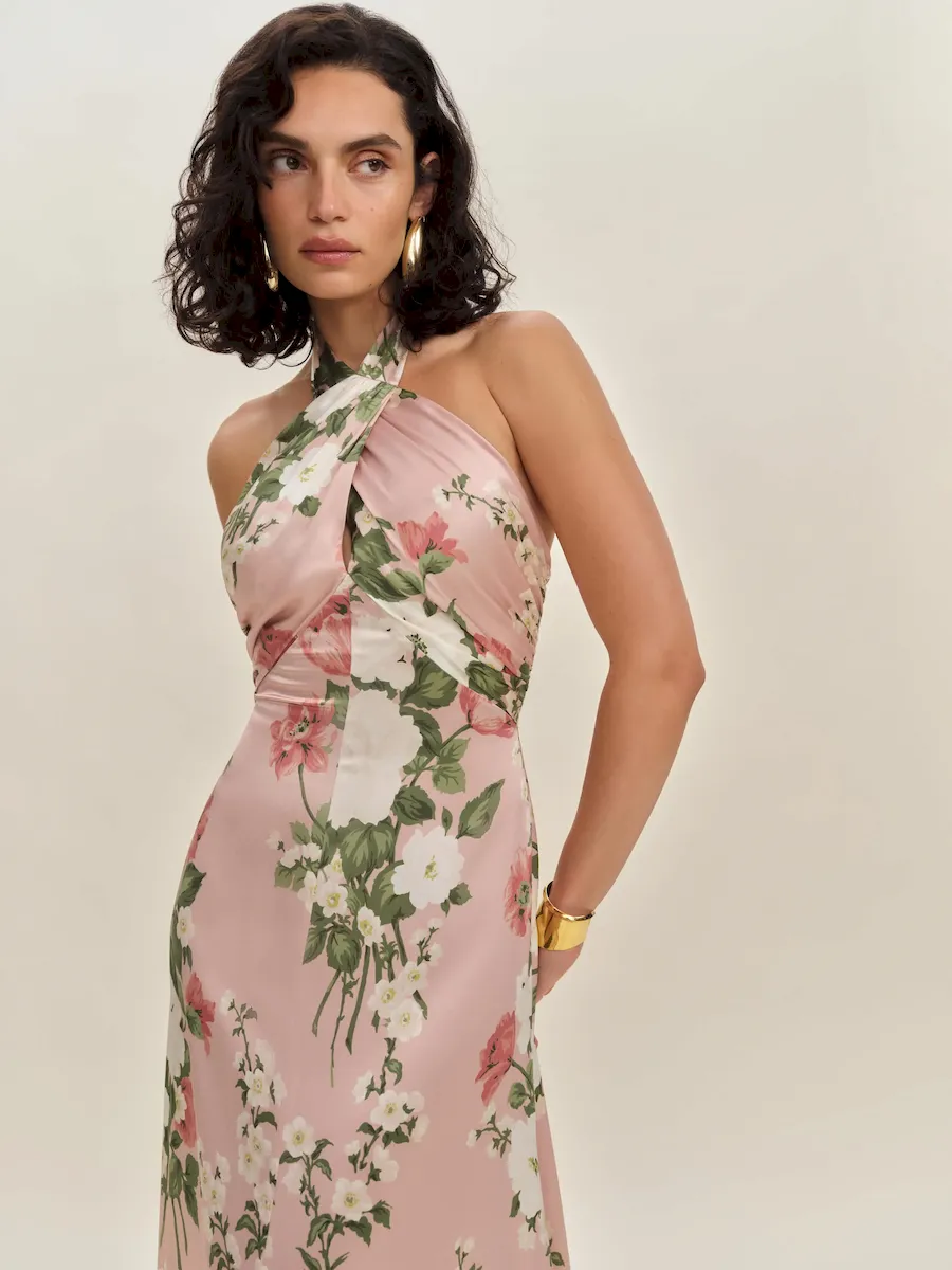 tie straps, halter neckline.