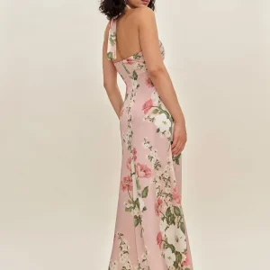 back zipper,front ruching,print may vary for each piece,and ties at neck.