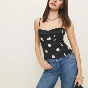 The model is wearing a size 0 and is 5’9″, 24″ waist, 34″ hips, 32″ bust.