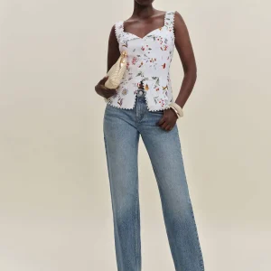 The model is wearing a size 0 and is 5’10”, 25″ waist, 35″ hips, 32″ bust.