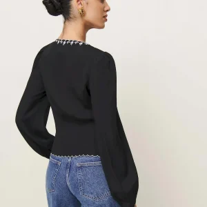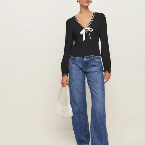 The model is wearing a size 0 and is 5’8″, 24″ waist, 36″ hips, 32″ bust.