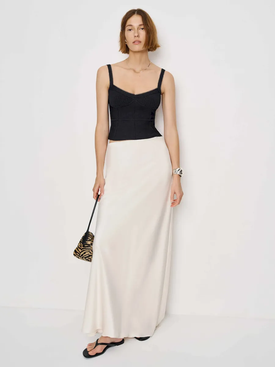 The model is wearing a size XS and is 5’11”, 24″ waist, 35″ hips, 31″ bust.