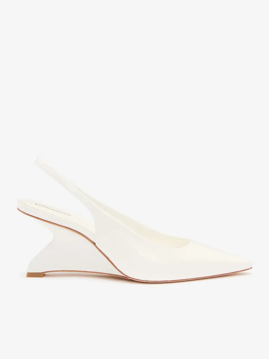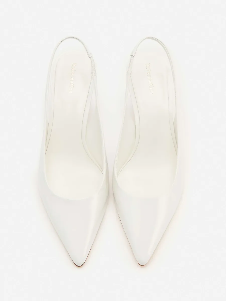 Bovine leather with lustrous patent finish.