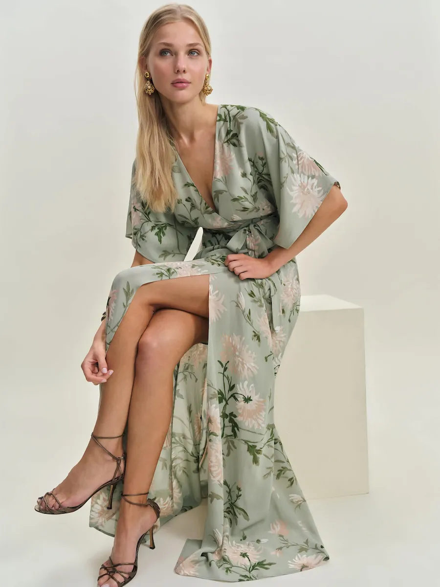 deep v neck, side slit.