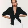 The model is wearing a size XS and is 5’11”, 24″ waist, 34″ hips, 32″ bust.