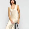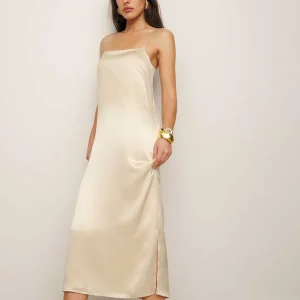 adjustable straps, straight neckline, double slit.