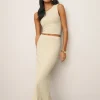 The model is wearing a size 0 and is 5’10”, 23″ waist, 35.5″ hips, 32.5″ bust.