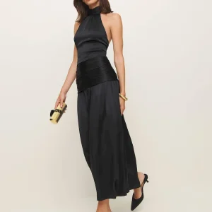 The model is wearing a size 0 and is 5’9″, 24″ waist, 34″ hips, 32″ bust.