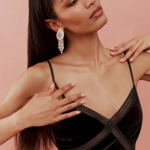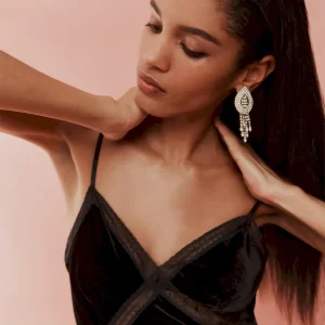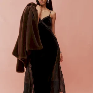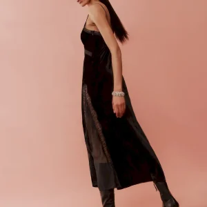 The model is wearing a size 0 and is 5’10”, 23″ waist, 35.5″ hips, 32.5″ bust.