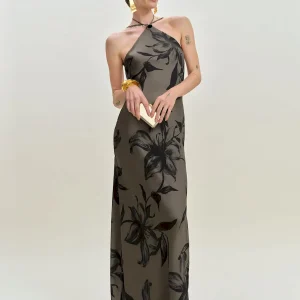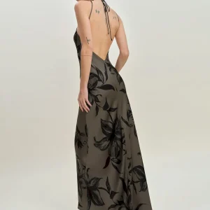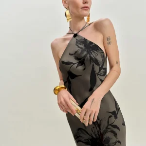 The model is wearing a size 0 and is 5’10”, 25″ waist, 34.5″ hips, 31″ bust.