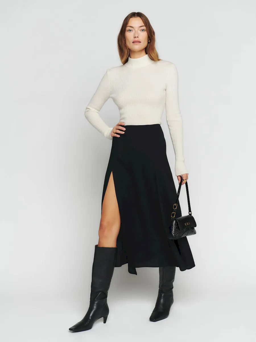 back zipperand high slit.